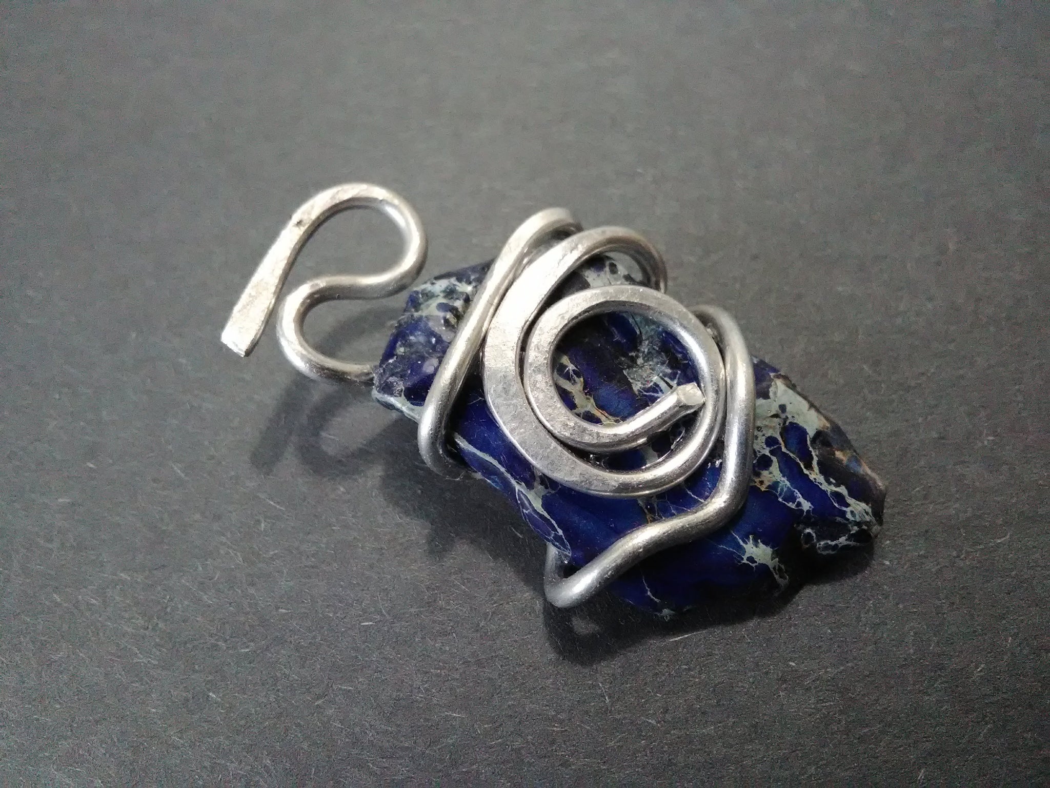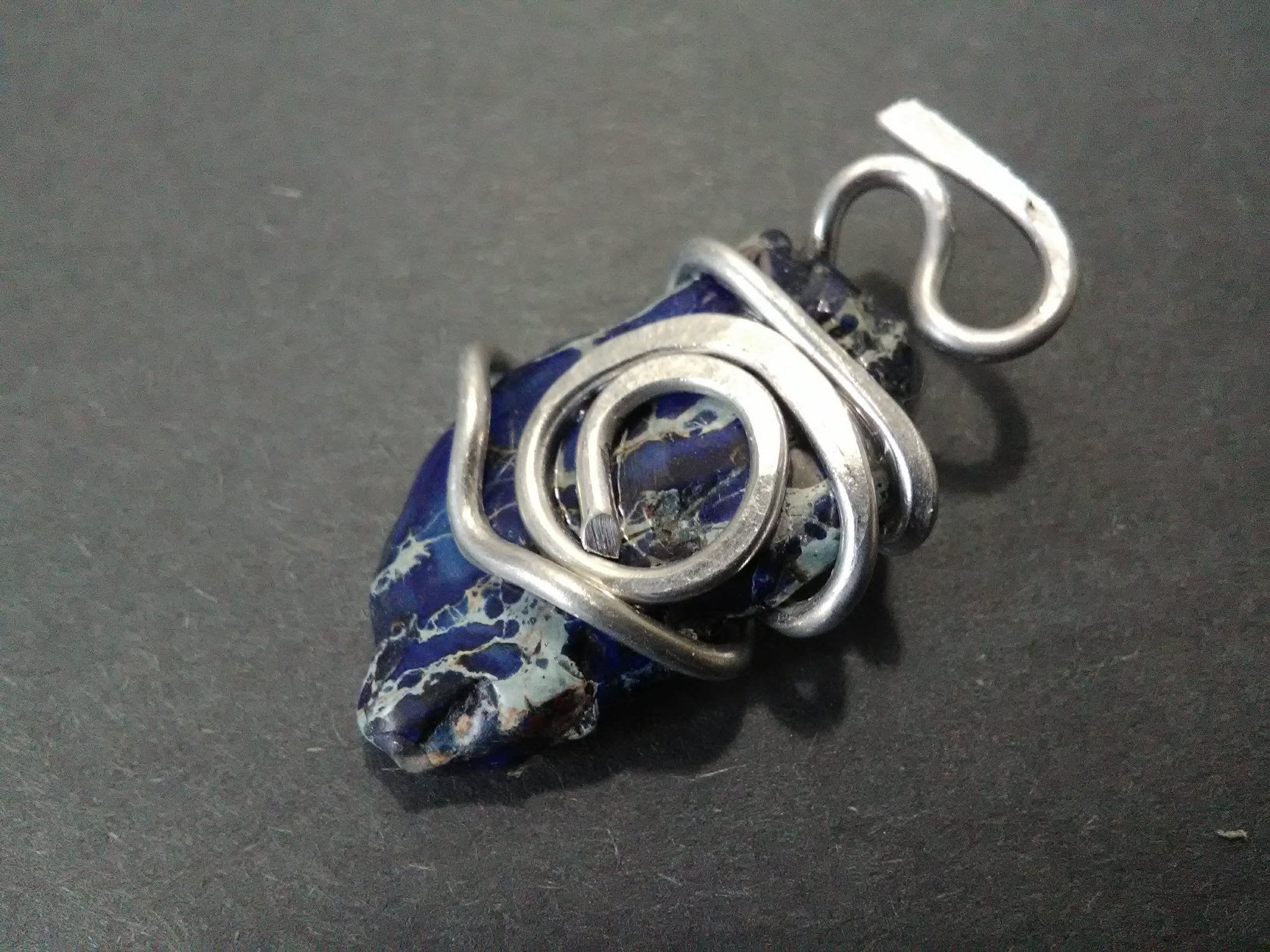 dark blue imperial jasper stone pendant/ 1 X 1 1/2" size stone/ silver aluminum wire wrap